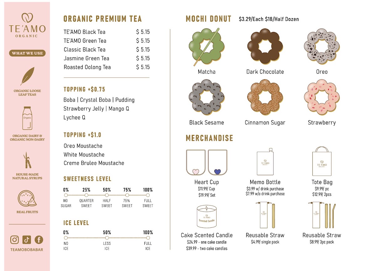 Welcome to TE'AMO Boba Bar, located in Schaumburg, IL, where delightful flavors come to life! Their menu is a testament to quality, featuring an array of organic drinks and smoothies that cater to diverse palates.